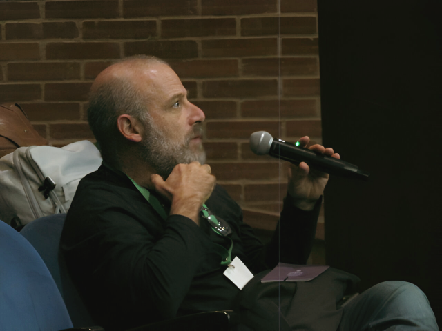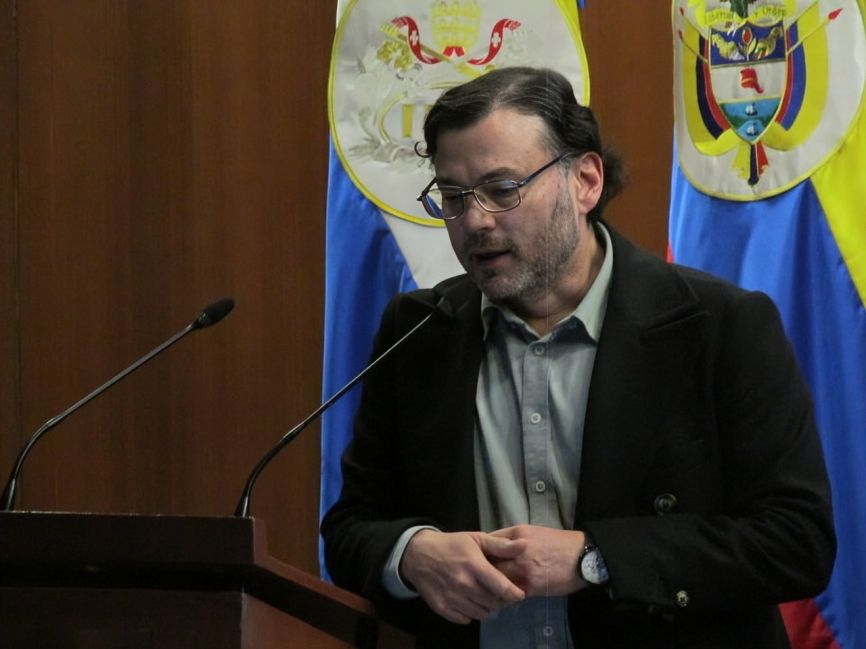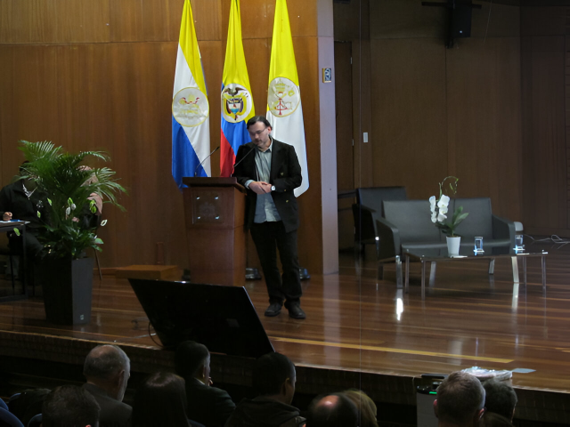 Andres Torres, director del Instituto Javeriano del Agua, presentó la charla "Research on the Constructed-Wetland/Regulation-Tank System at Pontificia Universidad Javeriana's Bogotá Campus"